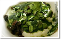 プレーンヨーグルトにレーズンをどっさりのせ、さらにくわ青汁を1袋かけて全部混ぜて食べてください。